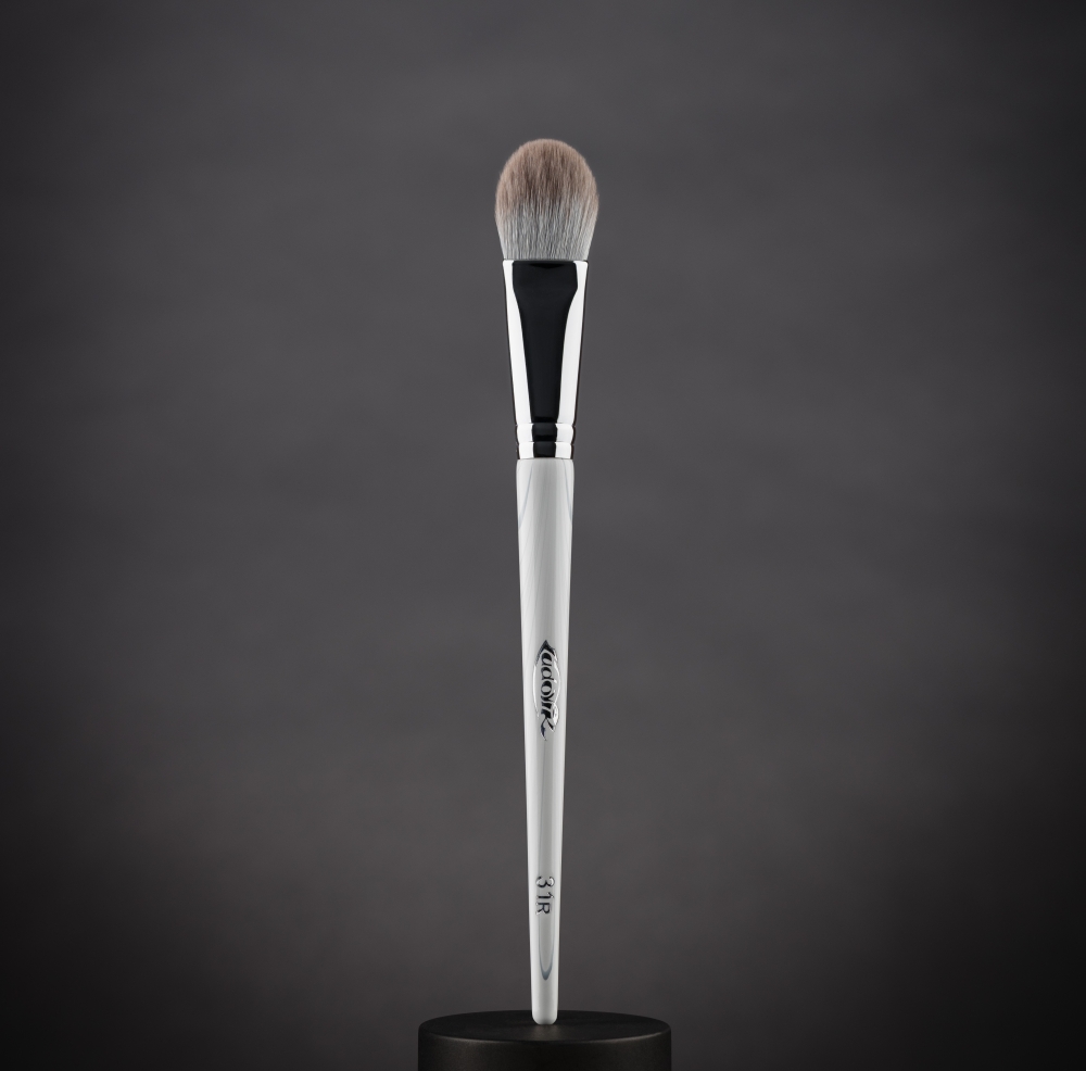 Плоская кисть №31R из ворса растительной синтетики овальной формы. Предназначена для нанесения тона, румян, хайлайтера, сухой коррекции.