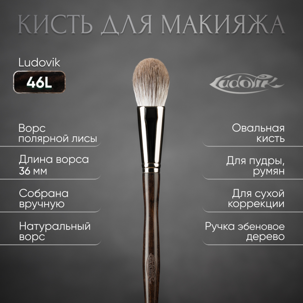 Эта роскошная кисть №46L изготовлена из высококачественного ворса полярной лисы, обеспечивая исключительную мягкость и невероятную эффективность при нанесении макияжа.