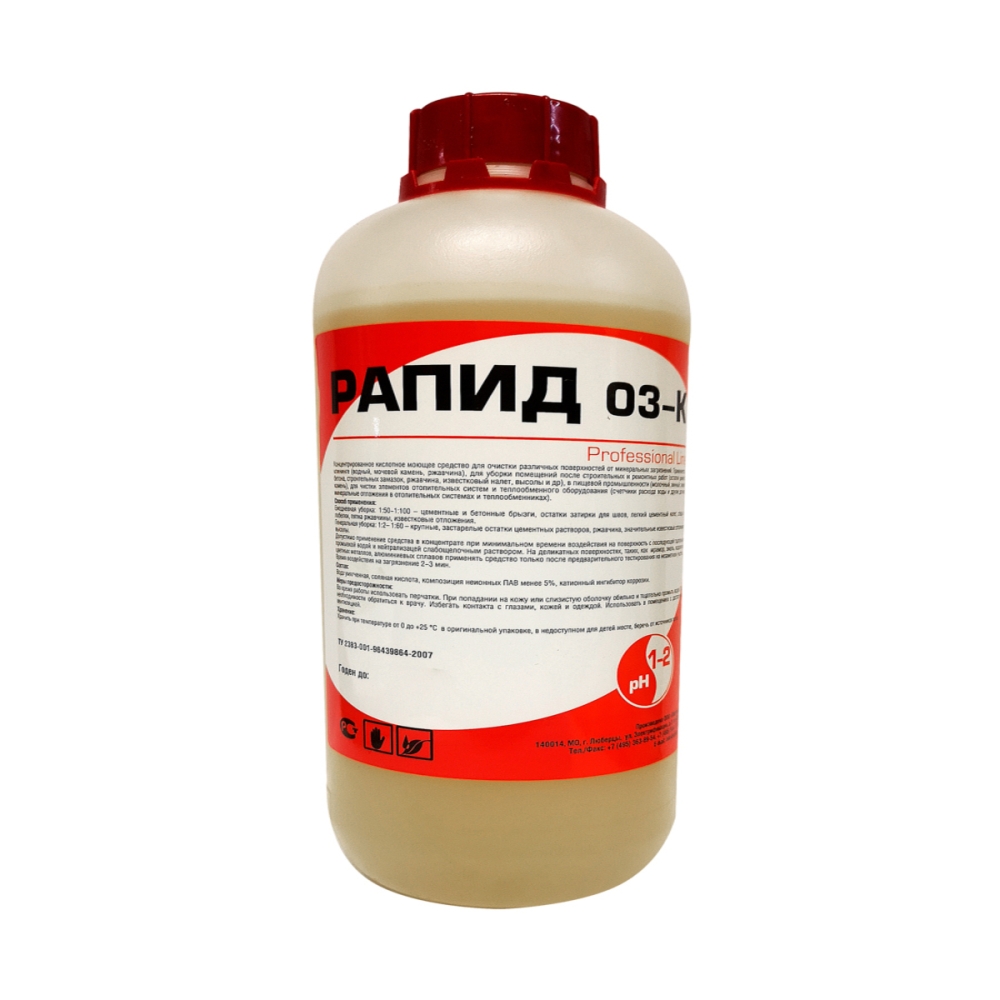 Концентрированное кислотное моющее средство для очистки различных поверхностей от минеральных загрязнений. Применяется в клининге, при послестроительной уборке