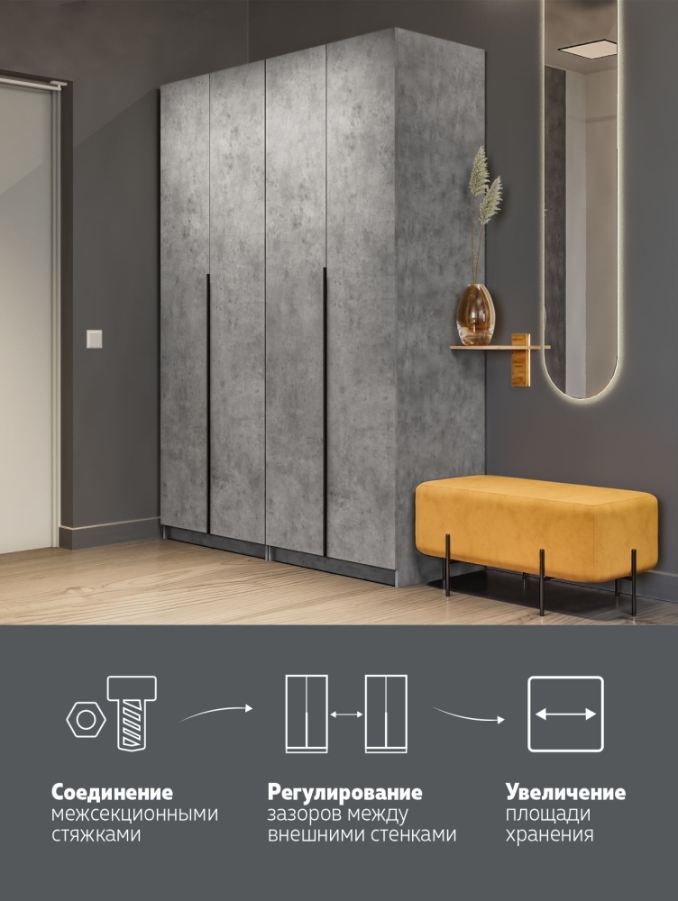 Распашной шкаф Локер 800+800 Бетон
