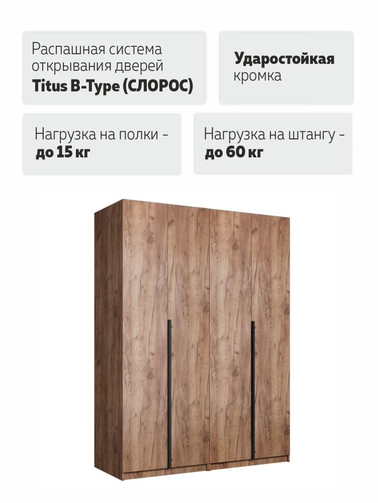 Система из двух шкафов Локер с распашным механизмом открывания Titus B-Type — это комфортное хранение вещей и эргономичная организация пространства. Благодаря надежным полкодержателям - штифтам, полки шкафа могут выдерживать до 15 кг. Шкаф оснащен долговечной, ударостойкой кромкой ПВХ, которая защищает его торцы от сколов и повреждений. Распашная система дверей обеспечивает надежное прилегание дверцы к корпусу шкафа и высокую износостойкость. Механизм не деформируется при значительных нагрузках и максимально практичен в эксплуатации. Шкаф оснащен удобной минималистичной ручкой, изготовленной из алюминия.