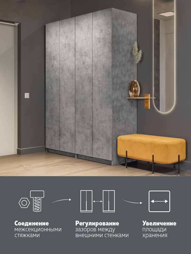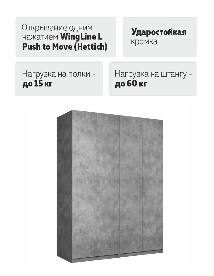 Распашной шкаф Локер 800+800 ("Push to Move"/Правый) Бетон
