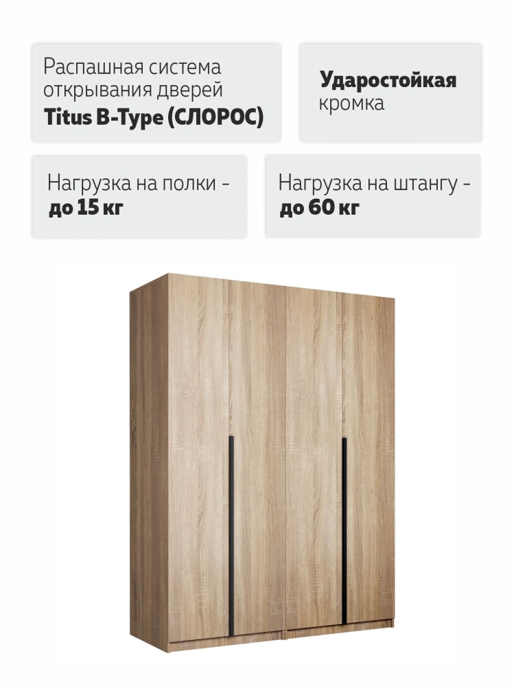 Система из двух шкафов Локер с распашным механизмом открывания Titus B-Type — это комфортное хранение вещей и эргономичная организация пространства. Благодаря надежным полкодержателям - штифтам, полки шкафа могут выдерживать до 15 кг. Шкаф оснащен долговечной, ударостойкой кромкой ПВХ, которая защищает его торцы от сколов и повреждений. Распашная система дверей обеспечивает надежное прилегание дверцы к корпусу шкафа и высокую износостойкость. Механизм не деформируется при значительных нагрузках и максимально практичен в эксплуатации. Шкаф оснащен удобной минималистичной ручкой, изготовленной из алюминия.