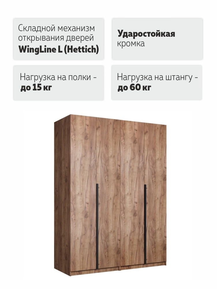 Система из двух шкафов Локер со складным механизмом открывания WingLine L— это комфортное хранение вещей и эргономичная организация пространства. Благодаря надежным полкодержателям - штифтам, полки шкафа могут выдерживать до 15 кг. Шкаф оснащен долговечной, ударостойкой кромкой ПВХ, которая защищает его торцы от сколов и повреждений. Складная система дверей WingLine L экономит внешнее пространство за счет складывания дверей и обеспечивает их надежную фиксацию в открытом виде. Данный механизм обеспечивает плавный ход и исключает образование слепых зон. Система рассчитана на 40 000 циклов «открывание-закрывание». Шкаф оснащен удобной минималистичной ручкой, изготовленной из алюминия.
