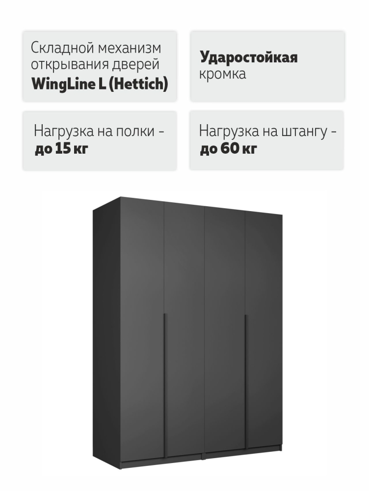 Система из двух шкафов Локер со складным механизмом открывания WingLine L— это комфортное хранение вещей и эргономичная организация пространства. Благодаря надежным полкодержателям - штифтам, полки шкафа могут выдерживать до 15 кг. Шкаф оснащен долговечной, ударостойкой кромкой ПВХ, которая защищает его торцы от сколов и повреждений. Складная система дверей WingLine L экономит внешнее пространство за счет складывания дверей и обеспечивает их надежную фиксацию в открытом виде. Данный механизм обеспечивает плавный ход и исключает образование слепых зон. Система рассчитана на 40 000 циклов «открывание-закрывание». Шкаф оснащен удобной минималистичной ручкой, изготовленной из алюминия.