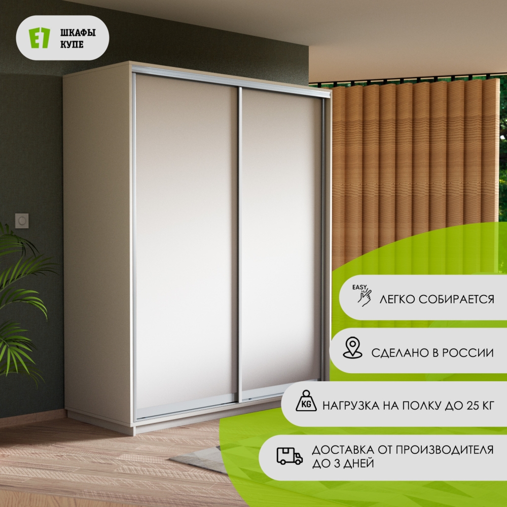 Материал корпуса: ЛДСПМатериал фасада: ЛДСПРазмеры: В 2200 Г 600 Ш 1400ВНИМАНИЕ! Минимальные размеры помещения для сборки и установки шкафа-купе серии Экспресс: /10 см по высоте, /5 см по ширине.Серия «Экспресс» - идеальное сочетание цены и качества. Подойдет тем, кто ищет вместительный шкаф-купе без излишеств. Идеально впишется в любой интерьер благодаря своему простому, но элегантному дизайну. Корпус шкафа надежный и прочный. В производстве используется безопасное ЛДСП международного класса Е1. Опорная система направляющих зарекомендовала себя долгим сроком службы, может пройти до 90 тысяч циклов открытия-закрытия дверей, и пользуется спросом у покупателей. На одежду не попадает пыль, так как в шкафу-купе установлена защитная щетка (шлегель) по краю дверного профиля. Отдельный цоколь позволяет поставить шкаф вплотную к стене, не снимая плинтус. Все зеркальные и стеклянные фасады оклеиваются противоосколочной пленкой, поэтому они не осыпаются даже при сильном ударе. Полки надежно закреплены в горизонтальной плоскости благодаря системе флипперов, и не опрокидываются при надавливании.Доступна услуга сборки. Все подробности по тарифам и срокам уточнять у продавца.