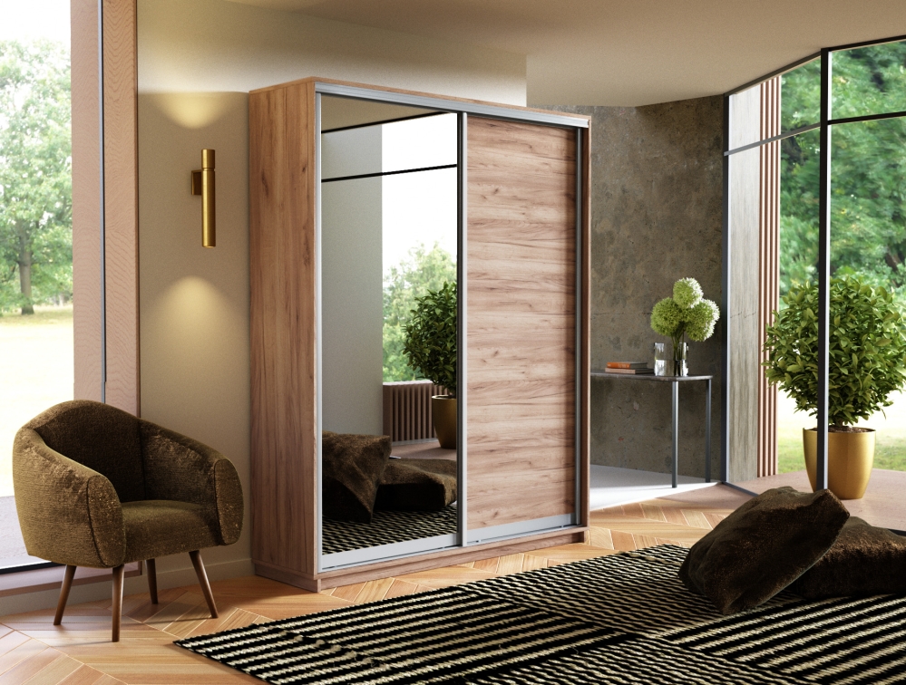 Шкаф-купе Экспресс, 2дв. ДСП/Зеркало, 120х45х240, Крафт табачный