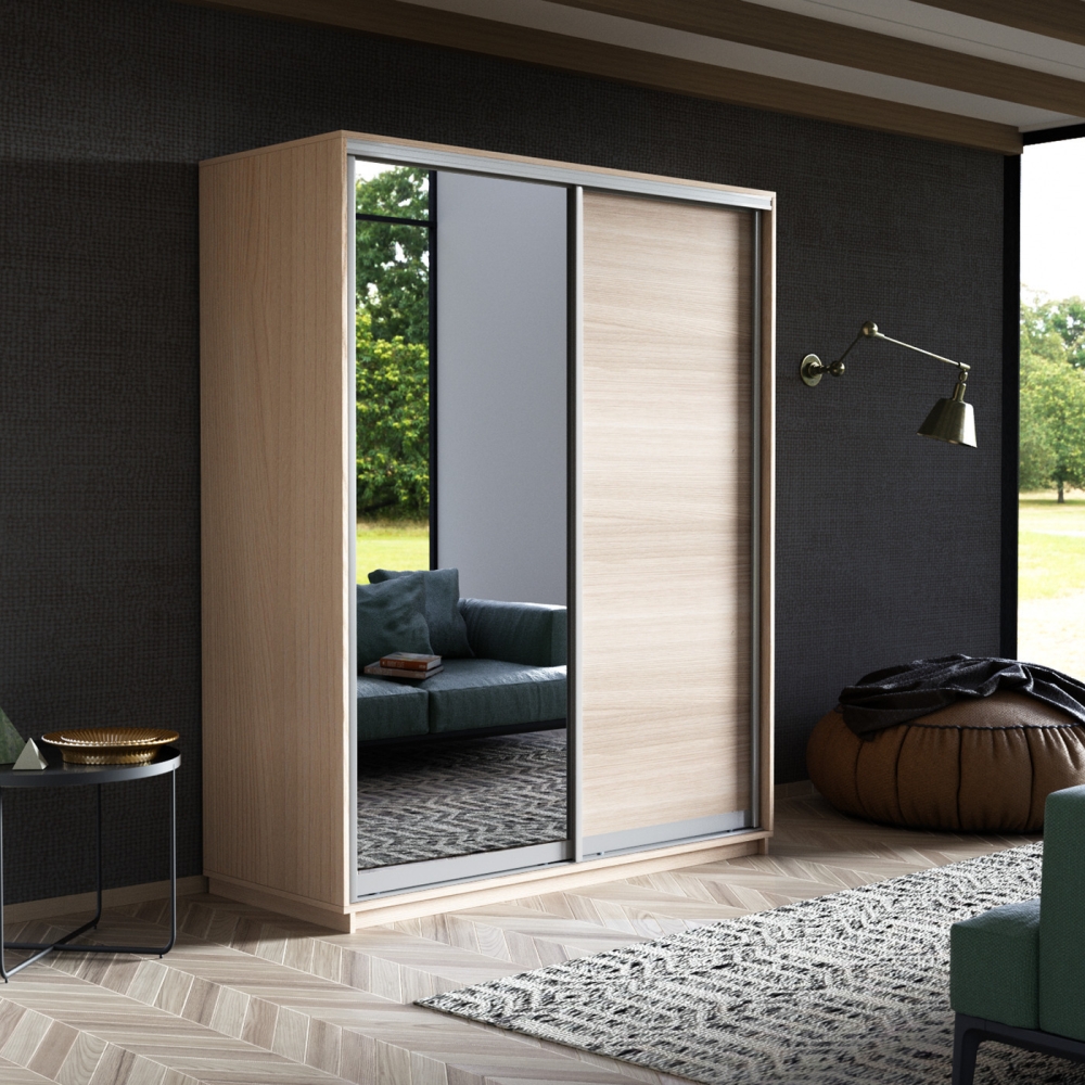 Шкаф-купе Экспресс, 2дв. ДСП/Зеркало, 120х60х220, Ясень Шимо светлый