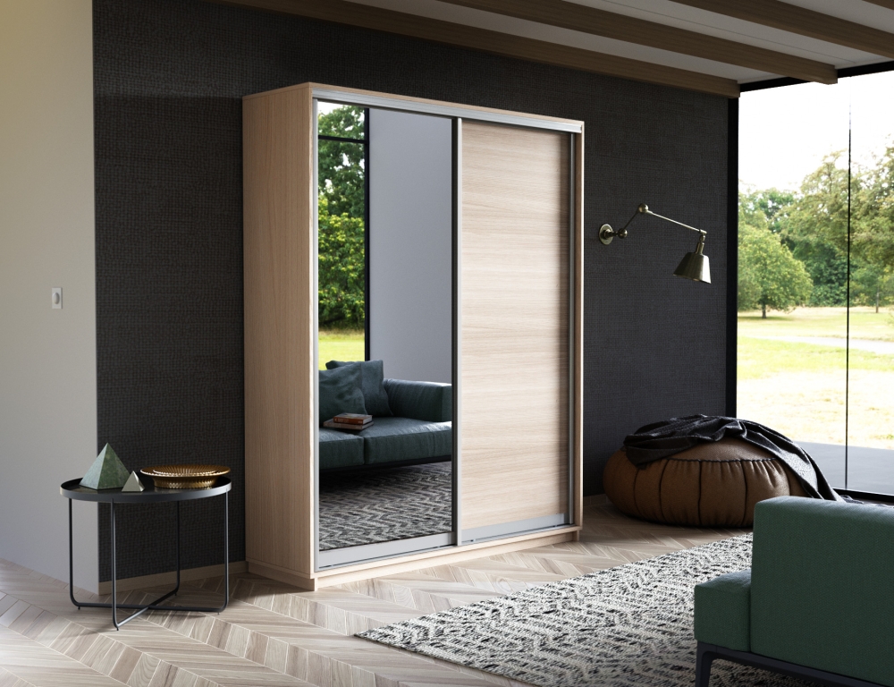 Шкаф-купе Экспресс, 2дв. ДСП/Зеркало, 140х45х240, Ясень шимо светлый