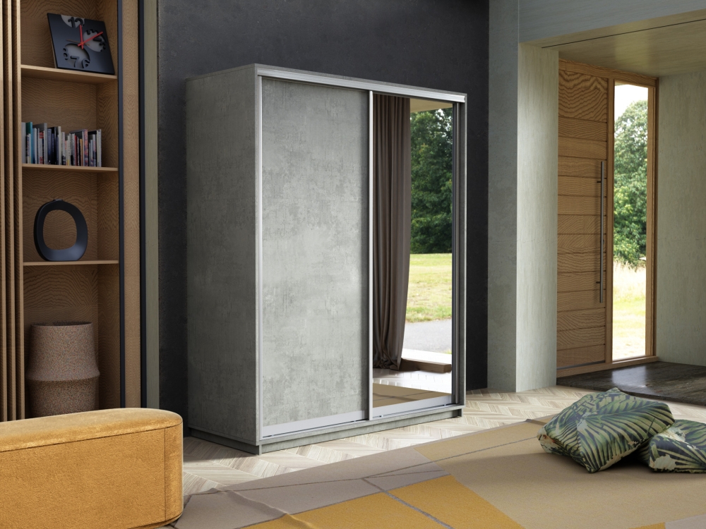 Шкаф-купе Экспресс, 2дв. ДСП/Зеркало, 140х60х240, Бетон