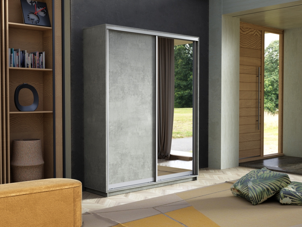 Шкаф-купе Экспресс, 2дв. ДСП/Зеркало, 160х45х240, Бетон