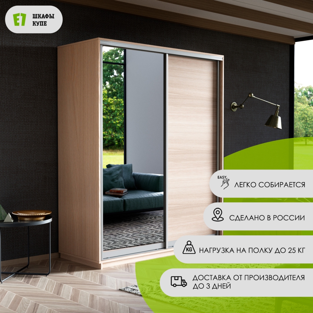 Шкаф-купе Экспресс, 2дв. ДСП/Зеркало, 160х60х240, Ясень Шимо светлый