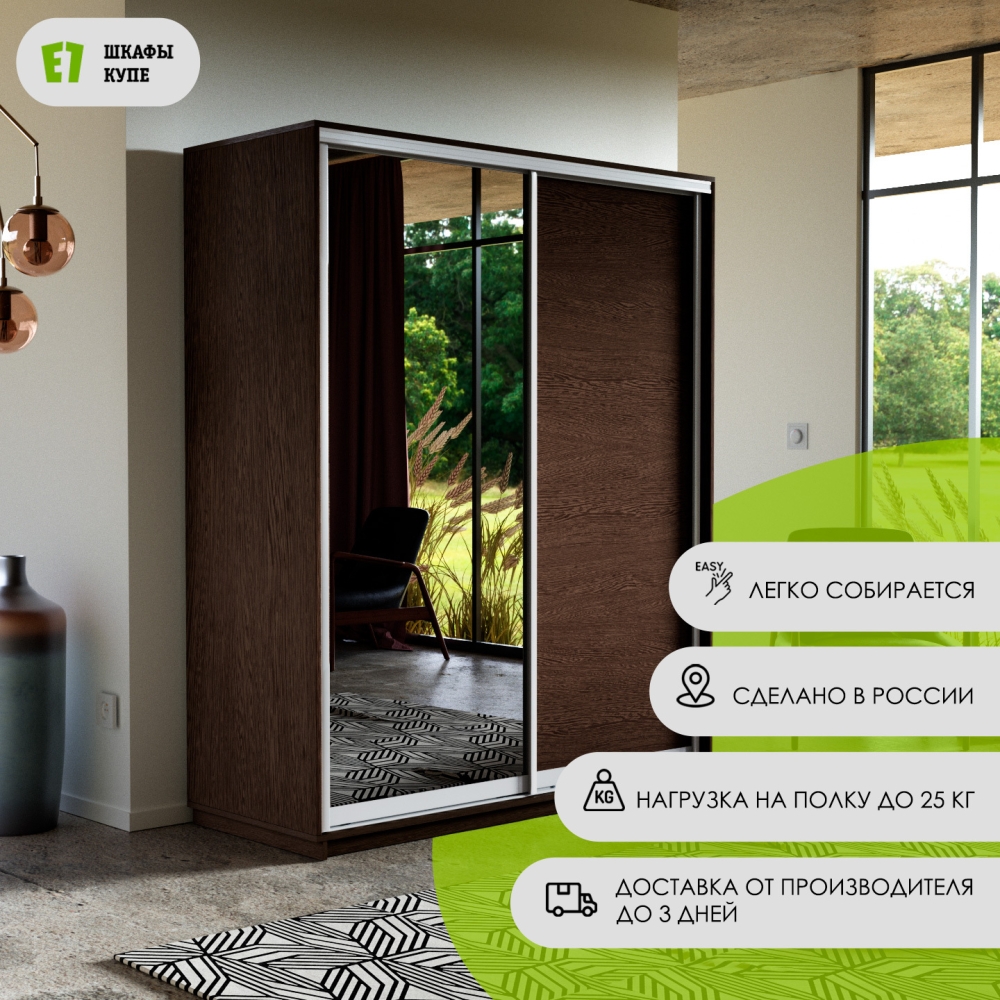 Шкаф-купе Экспресс, 2дв. ДСП/Зеркало, 160х60х240, Венге