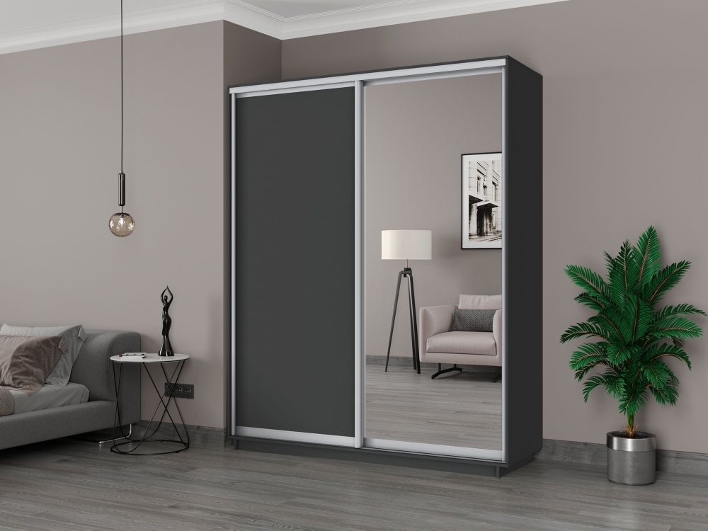 Шкаф-купе Экспресс, 2дв. ДСП/Зеркало, 180х45х220, Серый диамант