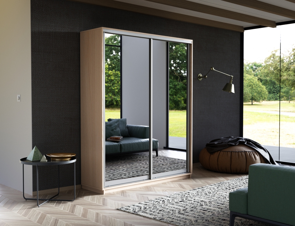 Шкаф-купе Экспресс, 2дв.-Зеркала, 120х45х240, Ясень шимо светлый