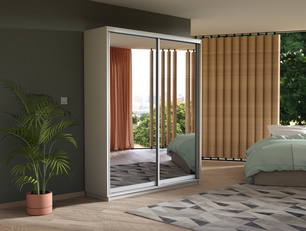 Шкаф-купе Экспресс, 2дв.-Зеркала, 140х45х220, Белый Снег