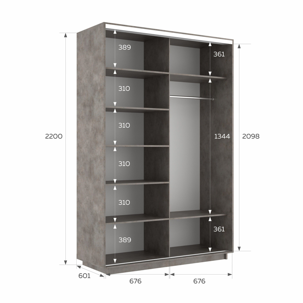 Шкаф-купе Экспресс, 2дв.-Зеркала, 140х60х220, Бетон