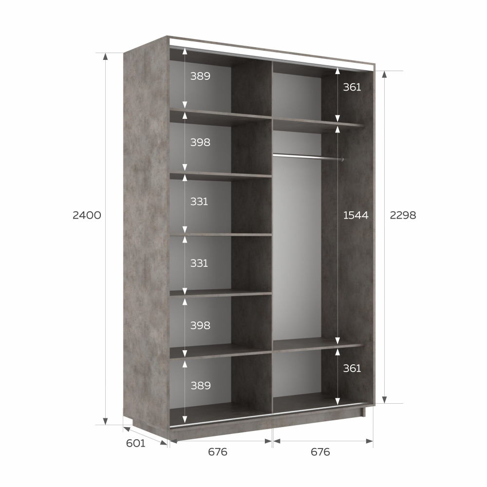 Шкаф-купе Экспресс, 2дв.-Зеркала, 140х60х240, Бетон