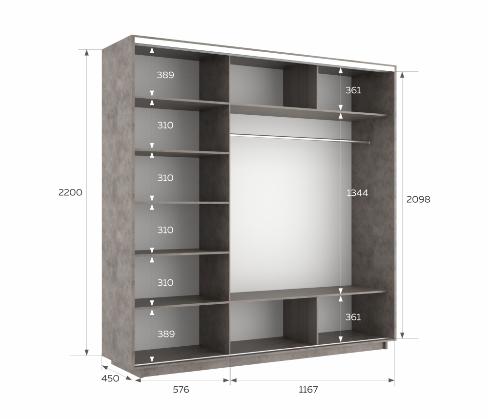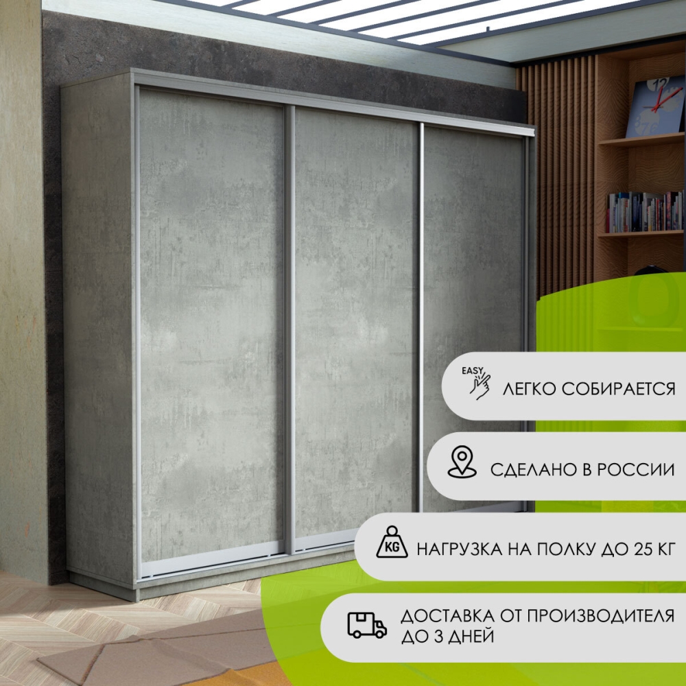 Шкаф-купе Экспресс 3дв. -ДСП, 180х45х220, Бетон