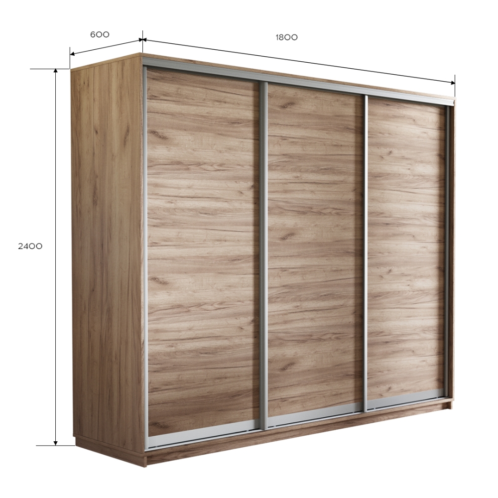 Материал корпуса: ЛДСПМатериал фасада: ЛДСПРазмеры: В 2400 Г 600 Ш 1800ВНИМАНИЕ! Минимальные размеры помещения для сборки и установки шкафа-купе серии Экспресс: /10 см по высоте, /5 см по ширине.Серия «Экспресс» - идеальное сочетание цены и качества. Подойдет тем, кто ищет вместительный шкаф-купе без излишеств. Идеально впишется в любой интерьер благодаря своему простому, но элегантному дизайну. Корпус шкафа надежный и прочный. В производстве используется безопасное ЛДСП международного класса Е1. Опорная система направляющих зарекомендовала себя долгим сроком службы, может пройти до 90 тысяч циклов открытия-закрытия дверей, и пользуется спросом у покупателей. На одежду не попадает пыль, так как в шкафу-купе установлена защитная щетка (шлегель) по краю дверного профиля. Отдельный цоколь позволяет поставить шкаф вплотную к стене, не снимая плинтус. Все зеркальные и стеклянные фасады оклеиваются противоосколочной пленкой, поэтому они не осыпаются даже при сильном ударе. Полки надежно закреплены в горизонтальной плоскости благодаря системе флипперов, и не опрокидываются при надавливании.Доступна услуга сборки. Все подробности по тарифам и срокам уточнять у продавца.