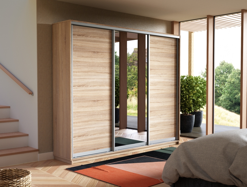 Шкаф-купе Экспресс 3дв. ДСП/Зеркало/ДСП, 180х45х240, Сонома