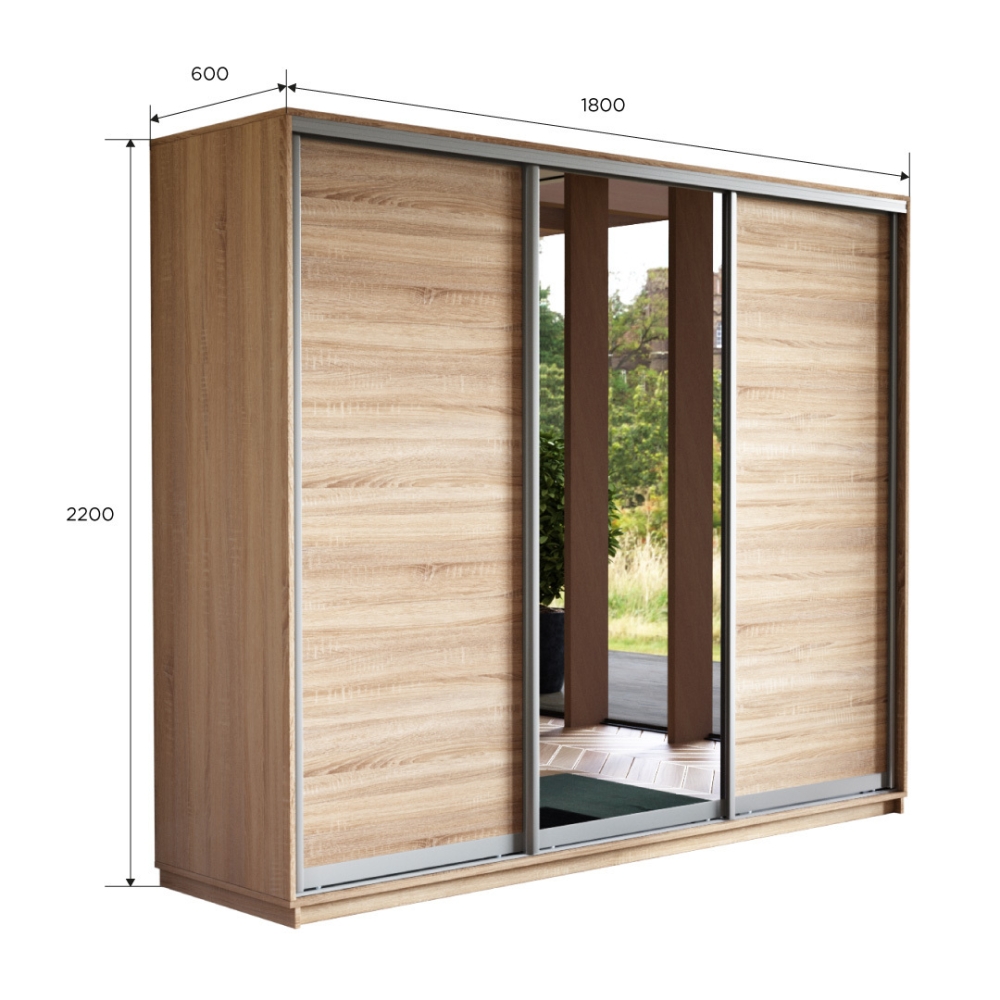 Шкаф-купе Экспресс 3дв. ДСП/Зеркало/ДСП, 180х60х220, Сонома