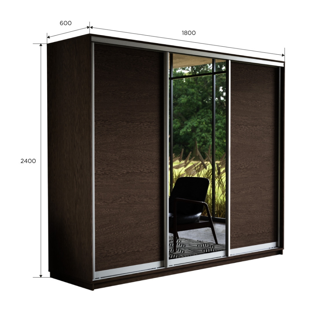 Шкаф-купе Экспресс 3дв. ДСП/Зеркало/ДСП, 180х60х240, Венге