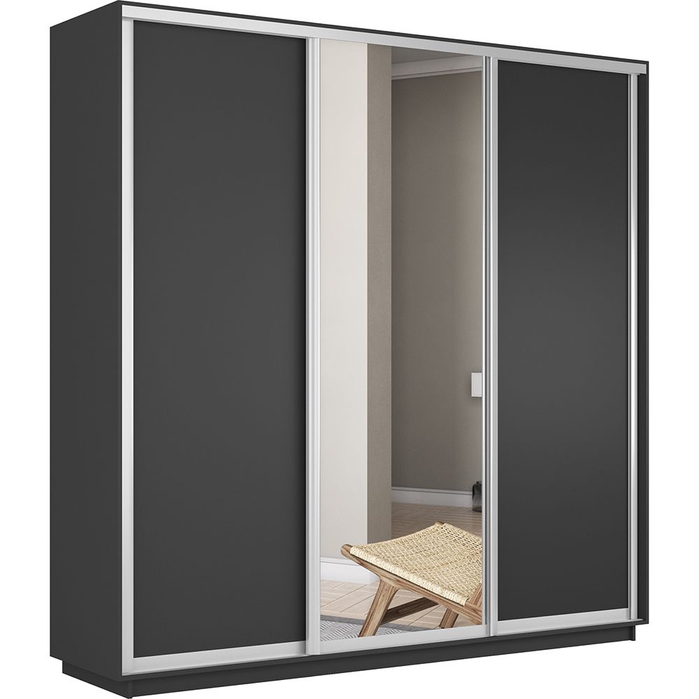 Шкаф-купе Экспресс 3дв. ДСП/Зеркало/ДСП, 240х60х240, Серый диамант