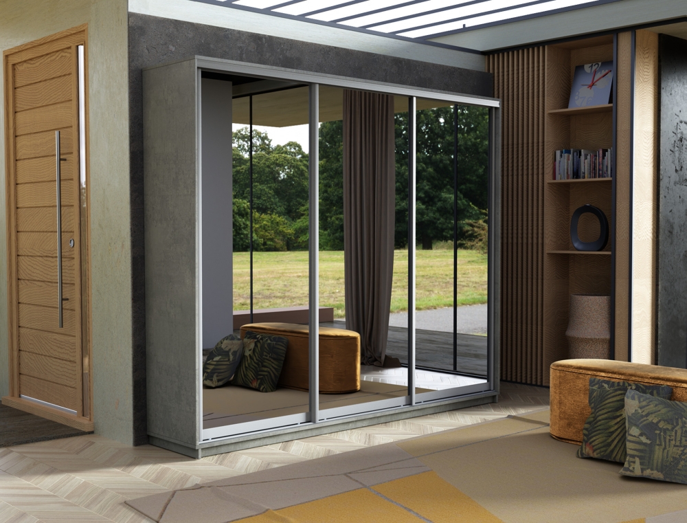 Шкаф-купе Экспресс 3дв.-зеркала, 180х45х220, Бетон