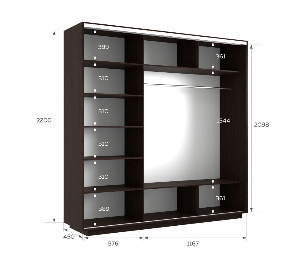Шкаф-купе Экспресс 3дв.-зеркала, 180х45х220, Венге