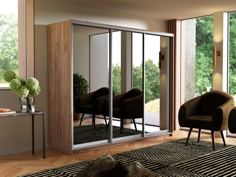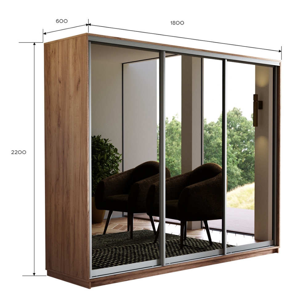 Шкаф-купе Экспресс 3дв.-зеркала, 180х60х220, Крафт табачный