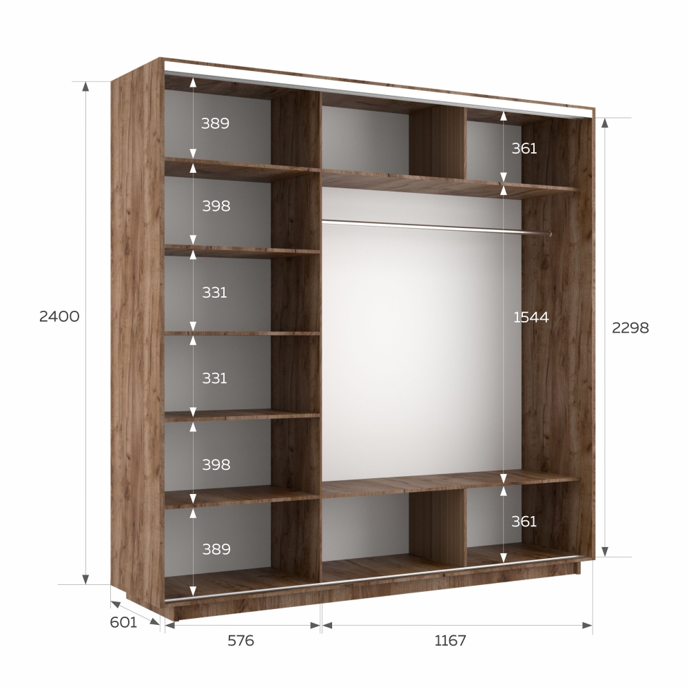 Шкаф-купе Экспресс 3дв.-зеркала, 180х60х240, Дуб табачный