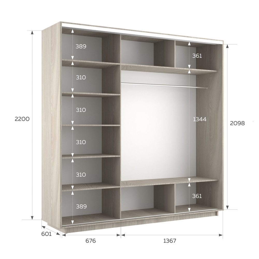 Шкаф-купе Экспресс 3дв.-зеркала, 210х60х220, Ясень Шимо Светлый