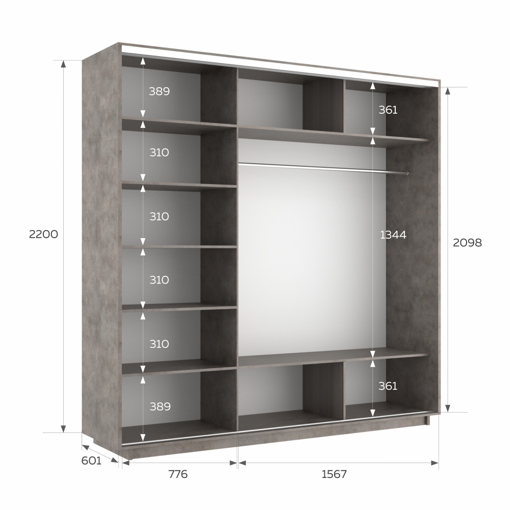 Шкаф-купе Экспресс 3дв.-зеркала, 240х60х220, Бетон
