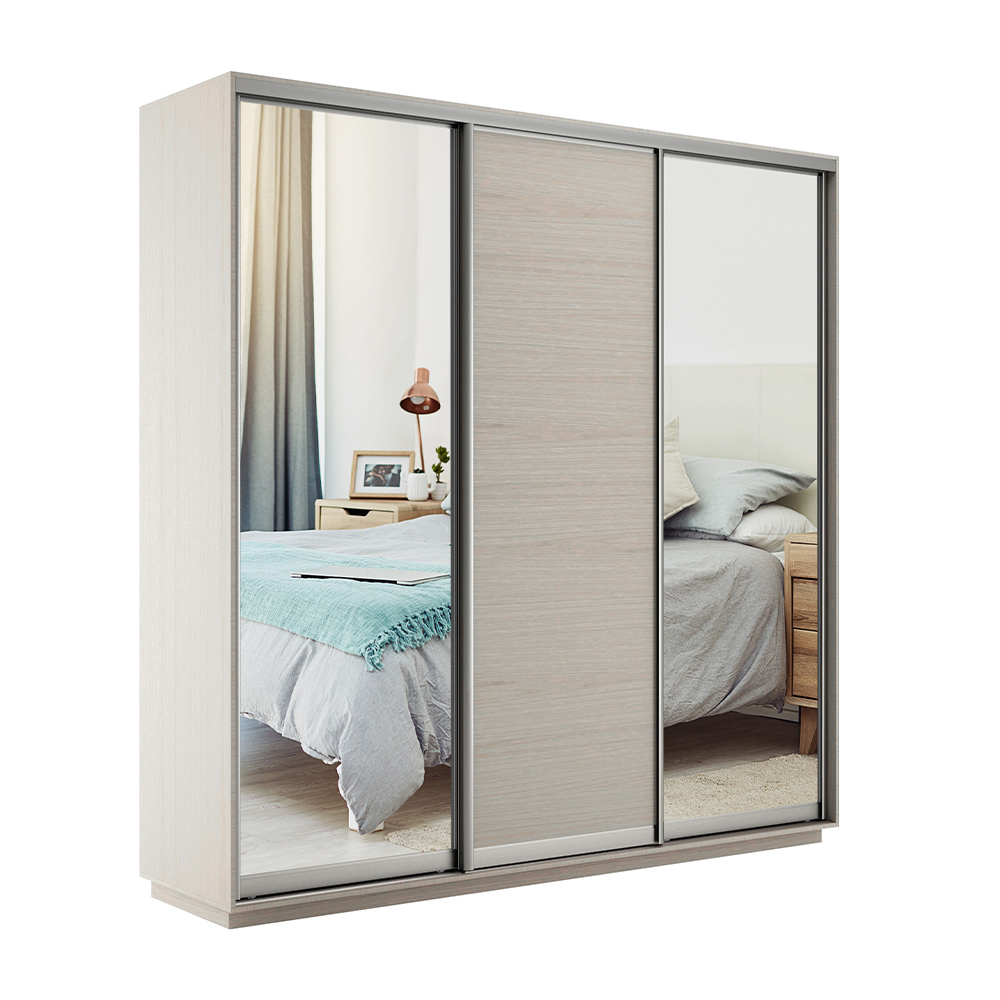 Шкаф-купе Экспресс 3дв. Зеркало/ДСП/Зеркало, 180х45х220, Ясень шимо светлый