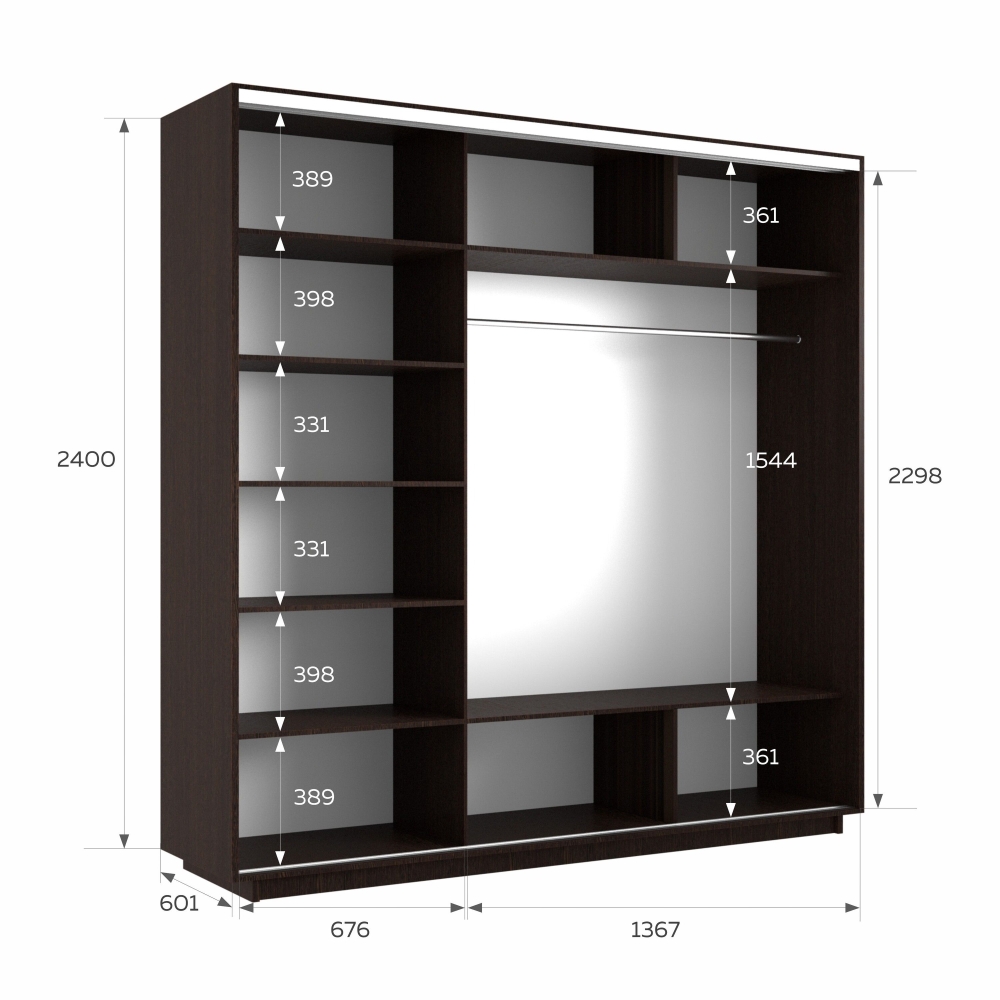 Шкаф-купе Экспресс 3дв. Зеркало/ДСП/Зеркало, 210х60х240, Венге
