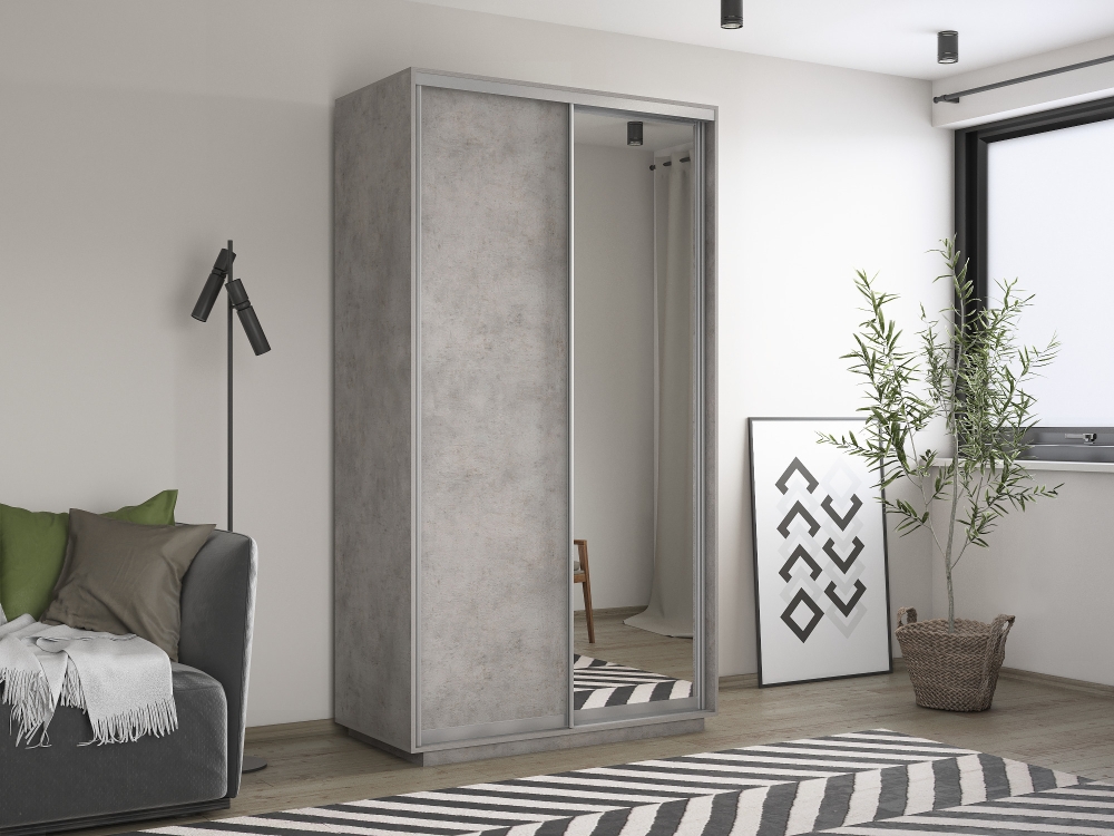 Шкаф-купе Экспресс Хит, 2дв. ДСП/Зеркало, 120х60х220, Бетон