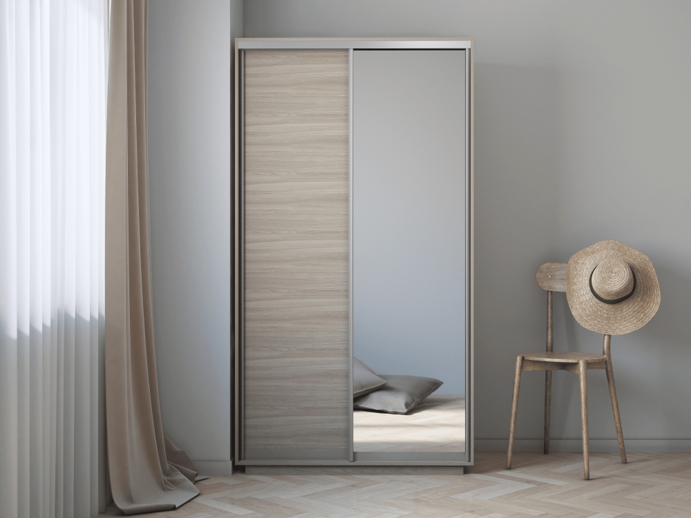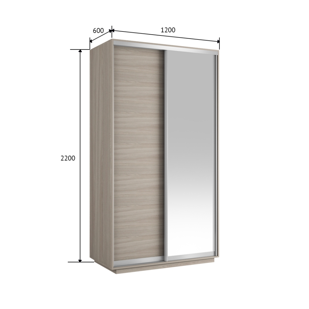 Шкаф-купе Экспресс Хит, 2дв. ДСП/Зеркало, 120х60х220, Ясень шимо светлый