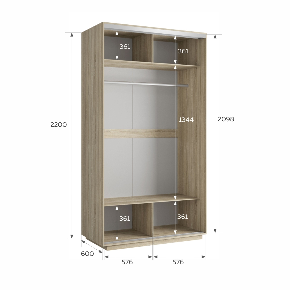 Шкаф-купе Экспресс Хит, 2дв.-зеркала, 120х60х220, Сонома