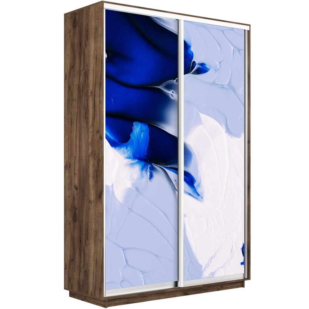 Шкаф-купе Фотопечать, 2дв. Абстракция бело-голубая, 160х60х240, Крафт табачный