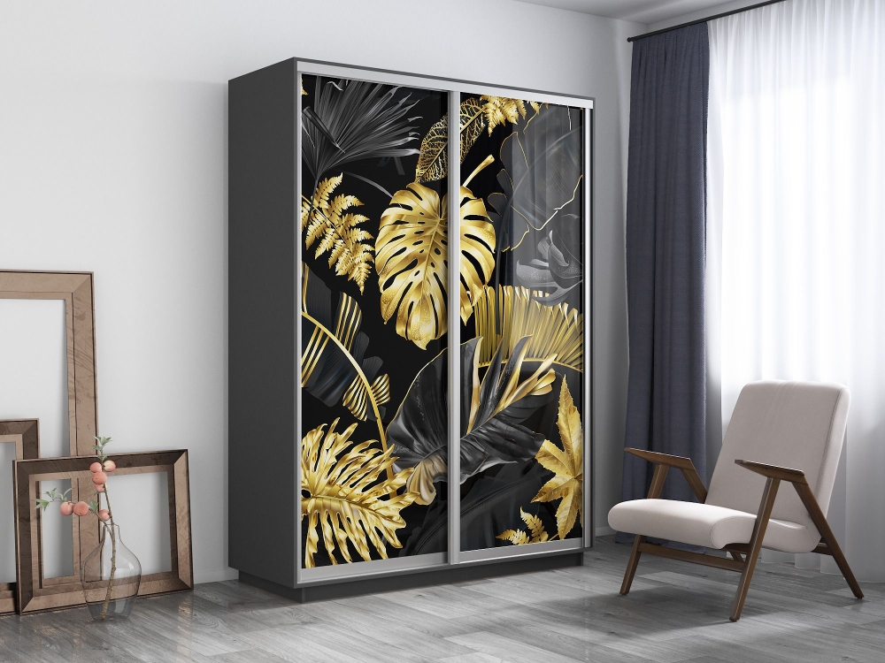 Шкаф-купе Фотопечать, 2дв. Листья золото, 120х45х240, Серый диамант