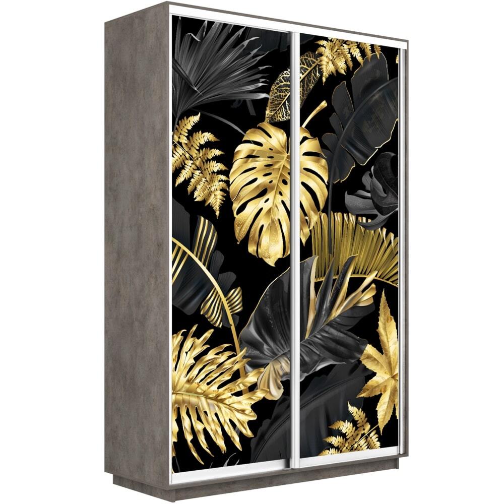 Шкаф-купе Фотопечать, 2дв. Листья золото, 120х60х220, Бетон