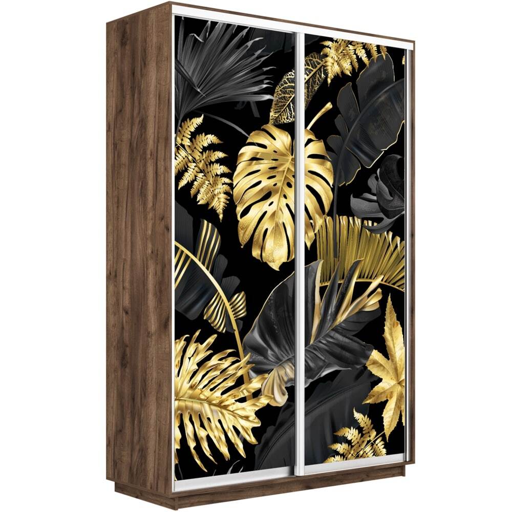 Шкаф-купе Фотопечать, 2дв. Листья золото, 140х45х240, Крафт табачный