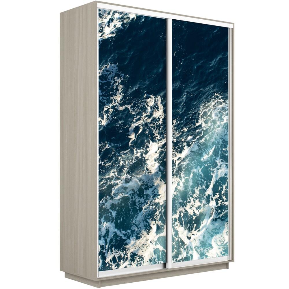 Шкаф-купе Фотопечать, 2дв. Морские волны, 160х60х240, Ясень шимо светлый