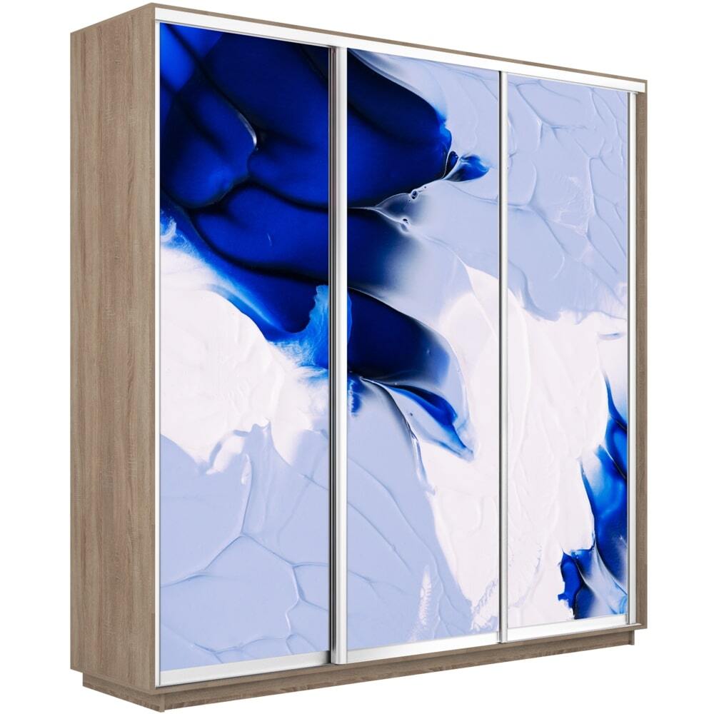 Шкаф-купе Фотопечать 3дв. Абстракция бело-голубая, 180х45х240, Сонома