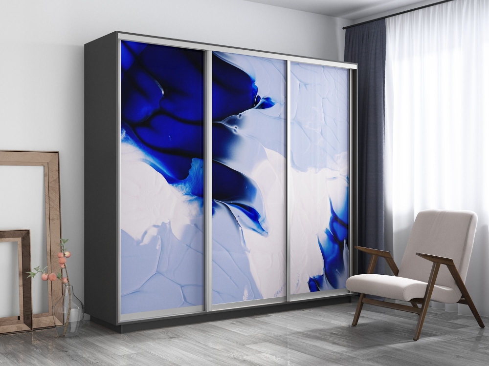Шкаф-купе Фотопечать 3дв. Абстракция бело-голубая, 180х60х240, Серый диамант