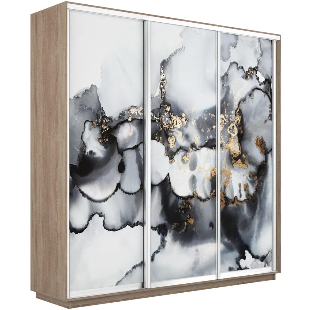 Шкаф-купе Фотопечать 3дв. Абстракция серая, 180х45х220, Сонома