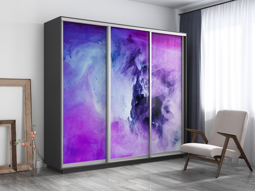 Шкаф-купе Фотопечать 3дв. Фиолетовый дым, 180х60х240, Серый диамант