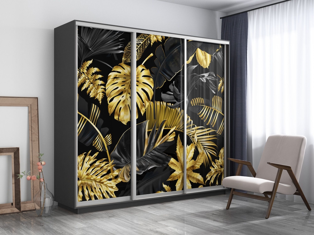 Шкаф-купе Фотопечать 3дв. Листья золото, 180х45х240, Серый диамант