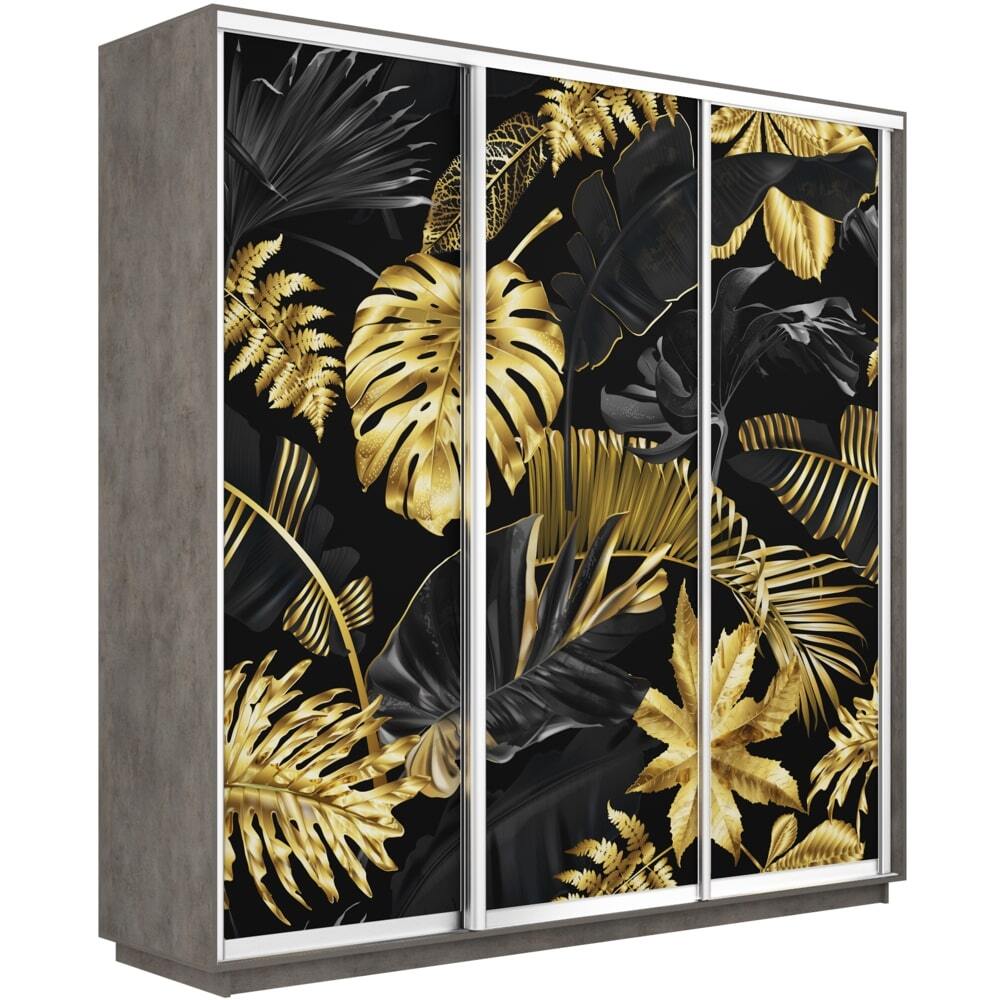 Шкаф-купе Фотопечать 3дв. Листья золото, 180х60х220, Бетон